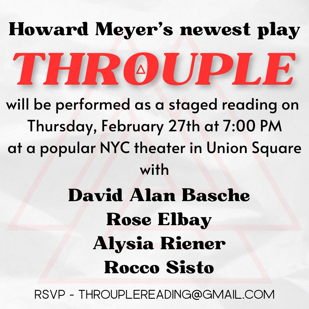 | THROUPLE | Private Readings | Axial Theatre; private readings with David Alan Bashe and Emmy Award winning actress with Alysia Renirer | 2023,2024 |